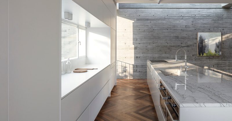 This technique is also used in the other bathroom, in onyx with delicate veins that connect to one another perfectly